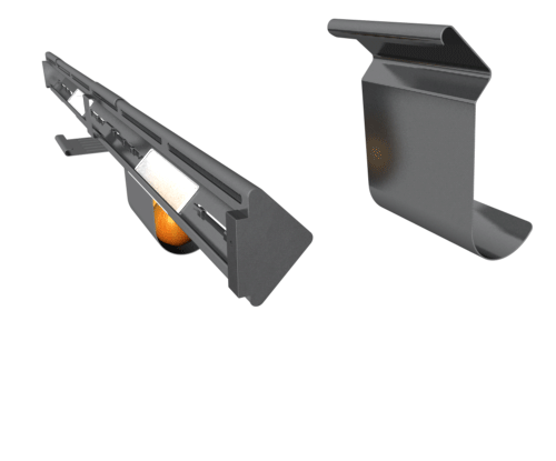 Zu sehen ist hier das Schienenprofil aus einer rückseitigen Perspektive. Wie man erkennen kann, befindet sich die Schiene in einem kleinen Abstand zur Wand, so dass die einzelnen Funktionsmodule ganz bequem befestigt werden können.