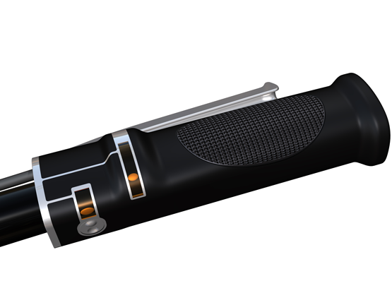 Der Griff des „Hydro Energie Systems“ ist geprägt durch eine sehr klare und reduzierte Formensprache. Mit seinen eingelassenen „Metalladern“ symbolisiert der Griff die gewisse Andersartigkeit und soll gleichzeitig die Neugier des Benutzers auf eine, in diesem Zusammenhang, völlig neue Technik wecken. Diese wird zusätzlich durch die sehr flachen, in den Griff eingelassenen, Metallknöpfe unterstrichen. Um eine sichere und ergonomische Haltung zu gewährleisten, ist der Griff in entsprechende Greif-, Schalt- und Anzeigezonen eingeteilt.