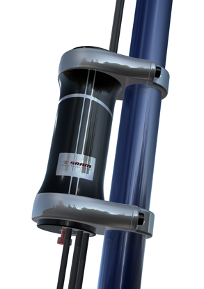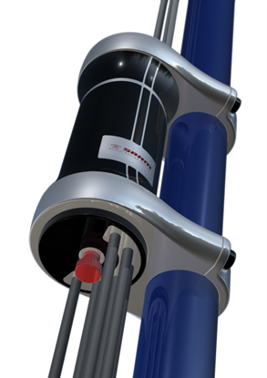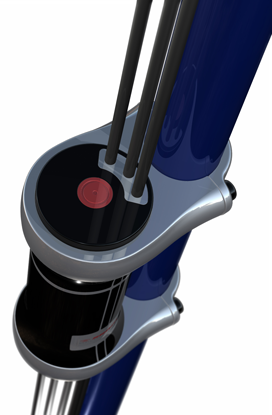 In der Regulierungseinheit laufen alle elektrischen bzw. hydraulischen Verbindungen zusammen und werden vom Lenkergriff aus bedient. An der Oberseite des Verteilers befindet sich ein Ventil, um Stickstoff für den Membranspeicher nachzufüllen und an der Unterseite eine Einstellschraube zur Regulierung des Flüssigkeitsdrucks. Zur Befestigung in zentraler Lage am Fahrrad dient eine lange Rahmenstange.